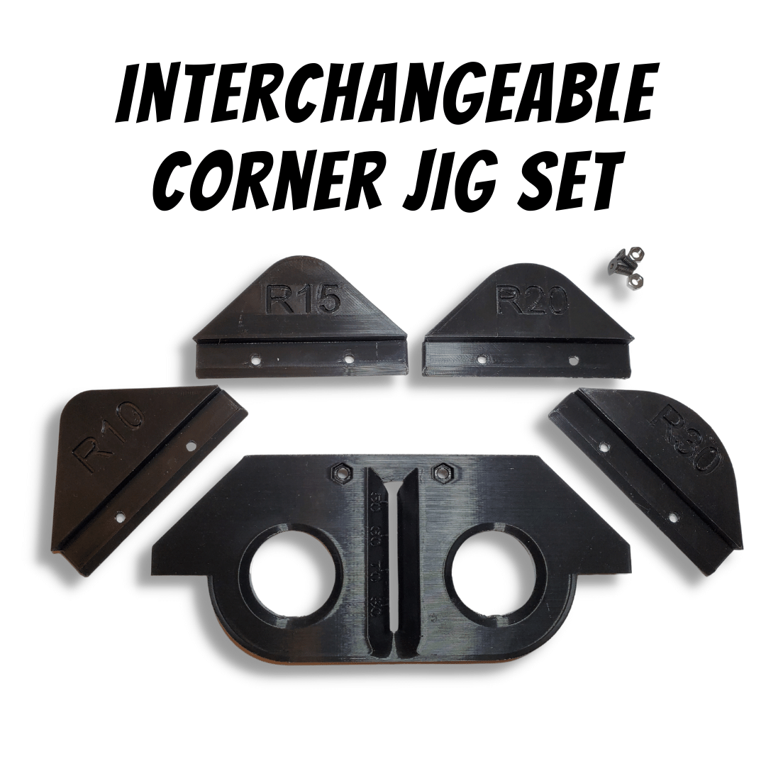 Fancy up the corners of your projects by templating the router work. Simply, place the desired Radial Tip onto the Alignment Bracket and fasten them together with the provided hardware. Then place the Jig on the corner of your project to cut perfect corners every time! With 4 different radius options, you can choose the best radius for your needs. The Dual Finger Grips give you unparalleled traction and control when routing.