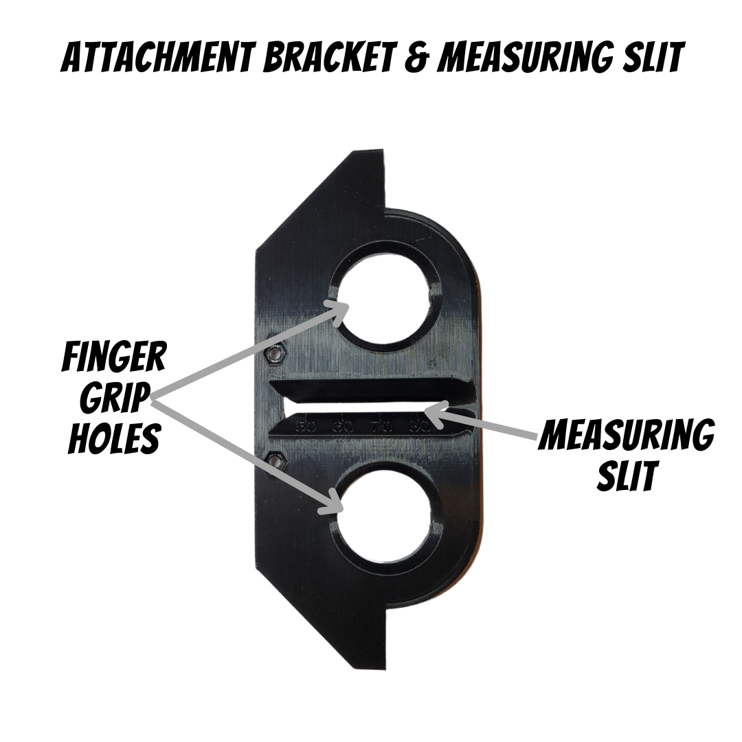 Use the Measuring Slit to mark perfectly placed drill holes for grommets and feet on the bottom of your charcuterie boards. Simply pull the jig into position on the corner (bottom) of your project and mark the desired distance from the corner. Drill pilot holes and screw on your foot - perfect placement & distance every time! Slotted to accommodate large carpentry pencils.