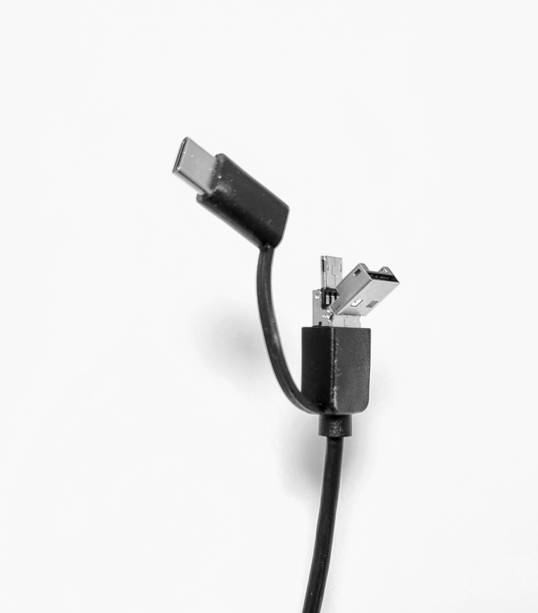 Micro USB, USB C, and regular USB (USB A)